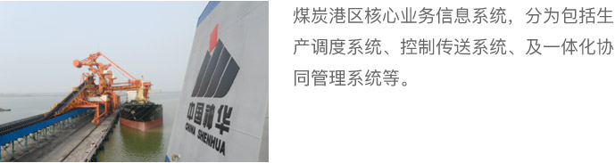 煤炭港区核心业务信息系统,分为包括生产调度系统、控制传送系统、及一体化协同管理系统等。