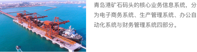 青岛港矿石码头的核心业务信息系统,分为电子商务系统、生产管理系统、办公自动化系统与财务管理系统四部分。