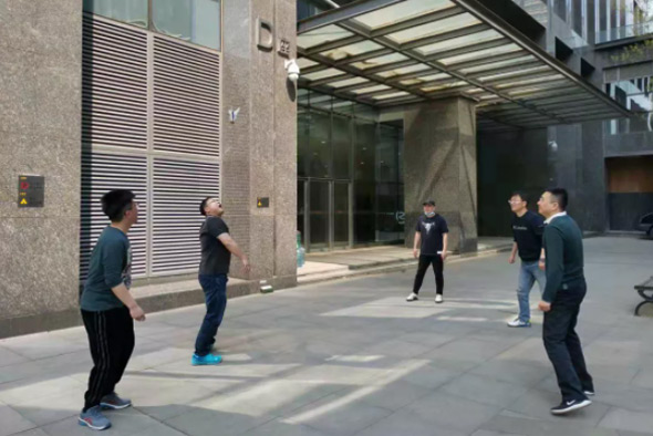 工会办与紫光公司工会小组利用午休时间组织职工开展踢键球活动,并不断扩大影响力,带动全德胜办公区内职工参与。通过这项活动增强职工体质,激发职工工作活力。