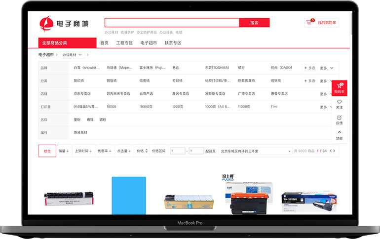平台以办公用品、福利及劳保用品、工程辅助材料等采购场景切入,以互联网、大数据等技术,解决企业零星物资采购“单笔金额小、采购批次多、商品品类杂、现场需用急”的痛点,为企业提供一站式的O2O采购服务。